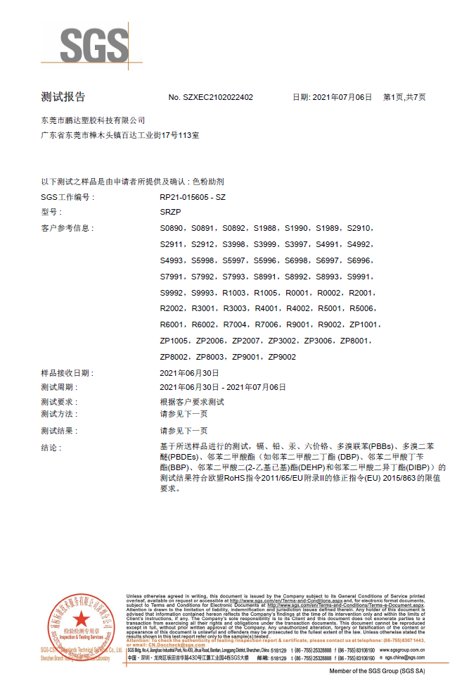 和鵬達塑膠科技有限公司合作很長一段時間了,他們的產(chǎn)品質量好,服務到位,且原材料都通過SGS測試符合歐盟REACH,PaHS、ROHS及無鹵指令,備有美國FDA級食品接觸規(guī)格物料,和他們合作完全沒有后顧之憂!